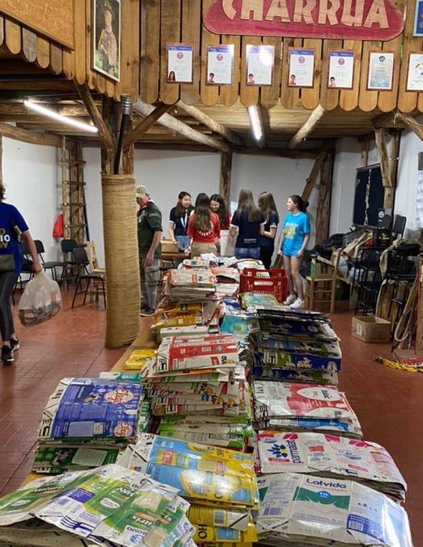 No último dia 27/08, mais uma vez os interactianos e os escoteiros se juntaram para cortarem, grampearem as caixas de leite recolhidas nos pontos de coleta da cidade. A montagem das placas está em andamento e logo poderão revestir a primeira casa. Esse é um projeto permanente de coleta e de reutilização de caixas de leite.
